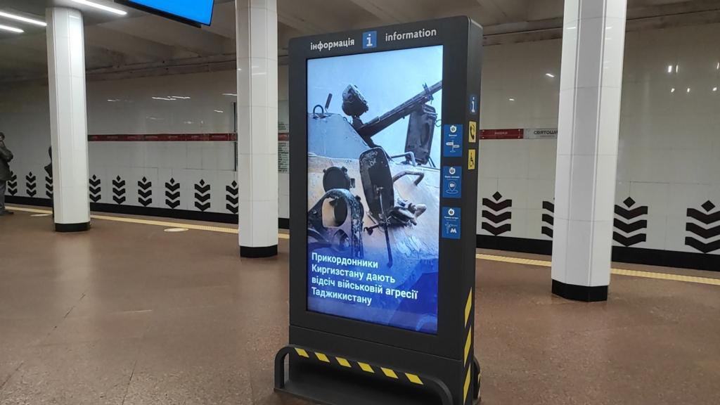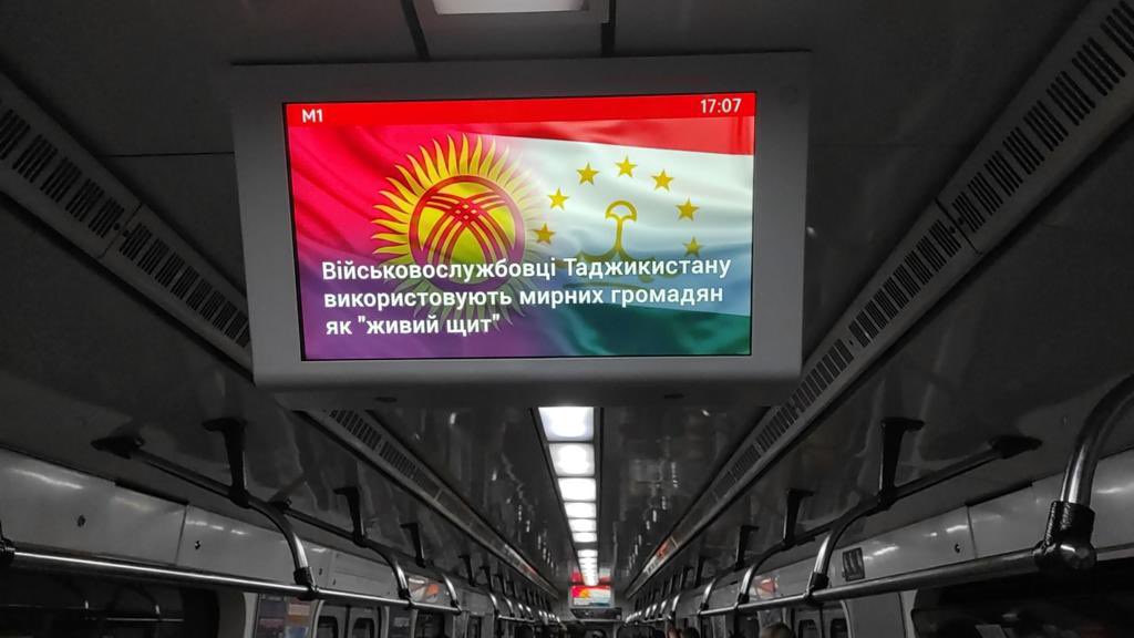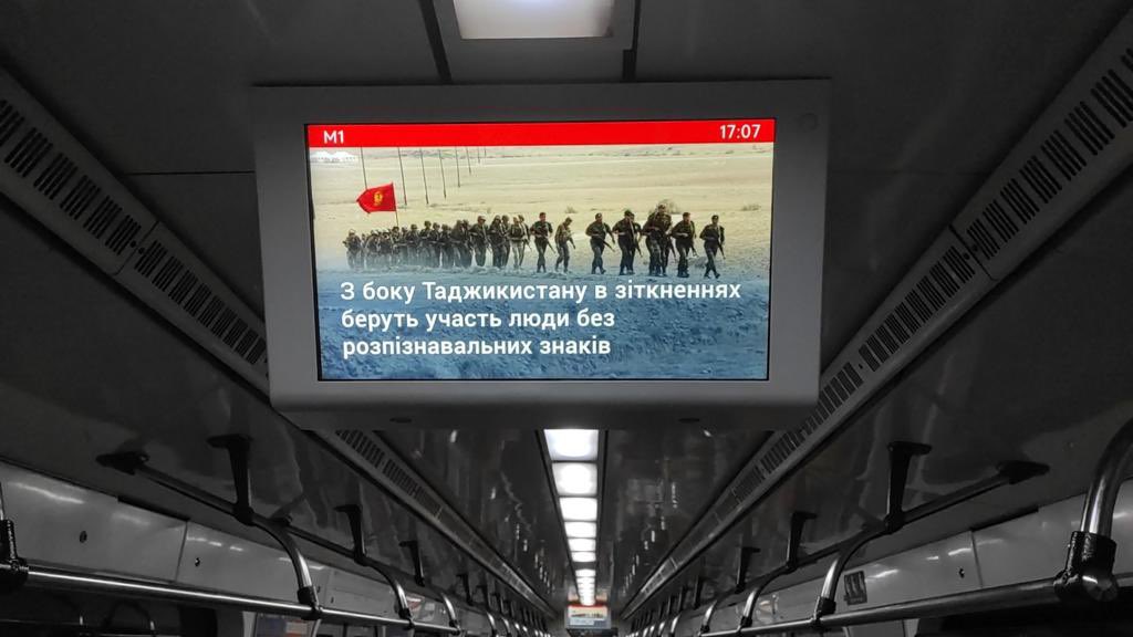 В метро Киева (Украина) на мониторах транслируют объявления о ситуации на кыргызско-таджикской границе.