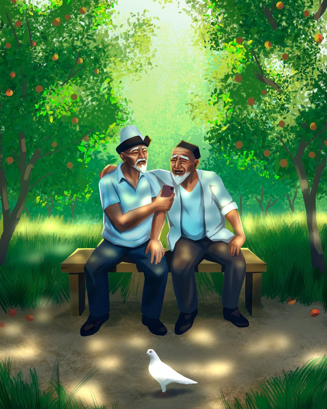 «Выражаю соболезнования всем пострадавшим, потерявшим близких в эти тяжелые дни. Очень хотелось бы, чтобы в будущем такие проблемы решались только мирным путем, ведь каждый народ хочет жить в мире и согласии. Арт от художника и дизайнера из Таджикистана Фаруха Сафарзаде для меня стал теплым лучом в ряду холодных новостей, которые мы видели в последние дни. И я решил тоже создать работу, в которой изображена долгая и мирная жизнь героев от таджикского художника. Всем мира и добра!» — написал Талгат Нурдинов.