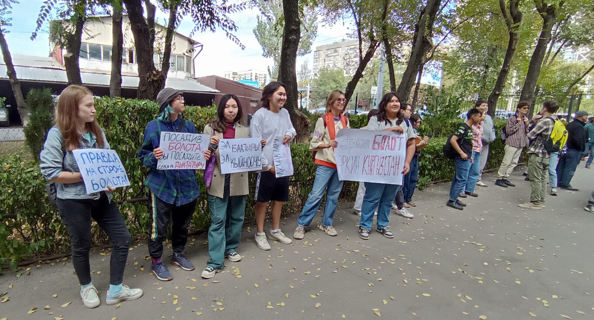 У здания Свердловского районного суда Бишкека, где сегодня вынесут приговор журналисту-расследователю Болоту Темирову, митингуют активисты.