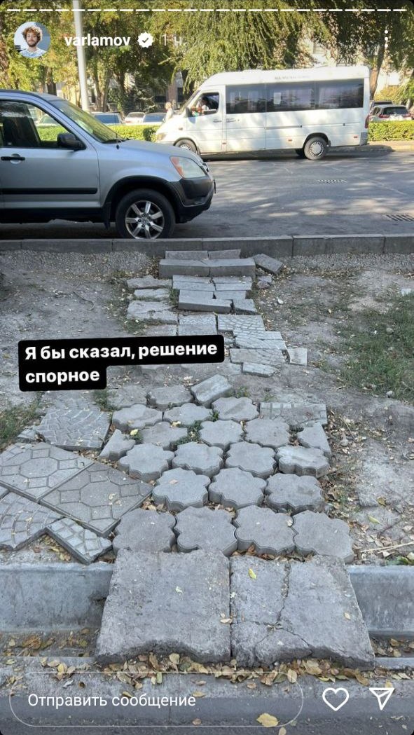 Российский блогер и урбанист Илья Варламов вновь прилетел в Бишкек. На своей странице в Instagram блогер опубликовал снимки, сделанные им на центральной площади Ала-Тоо, у памятника Владимиру Ленину на Старой площади, и успел раскритиковать столичные тротуары.