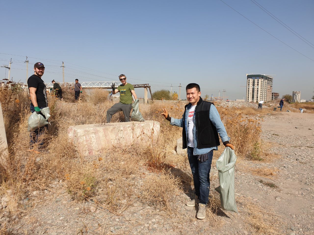 Желающие принять участие в субботнике собирались в двух частях города — в микрорайоне «Аламедин-1» и на территории, прилегающей к Южному Большому Чуйскому каналу. Участием в большом городском субботнике релоканты решили поблагодарить Бишкек за теплый прием.