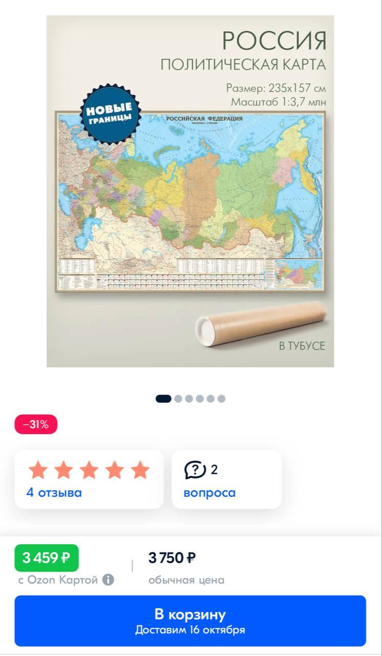 А в России тем временем в интернет-магазине Ozon появились в продаже новые карты РФ. Пока там плюс четыре новых региона.