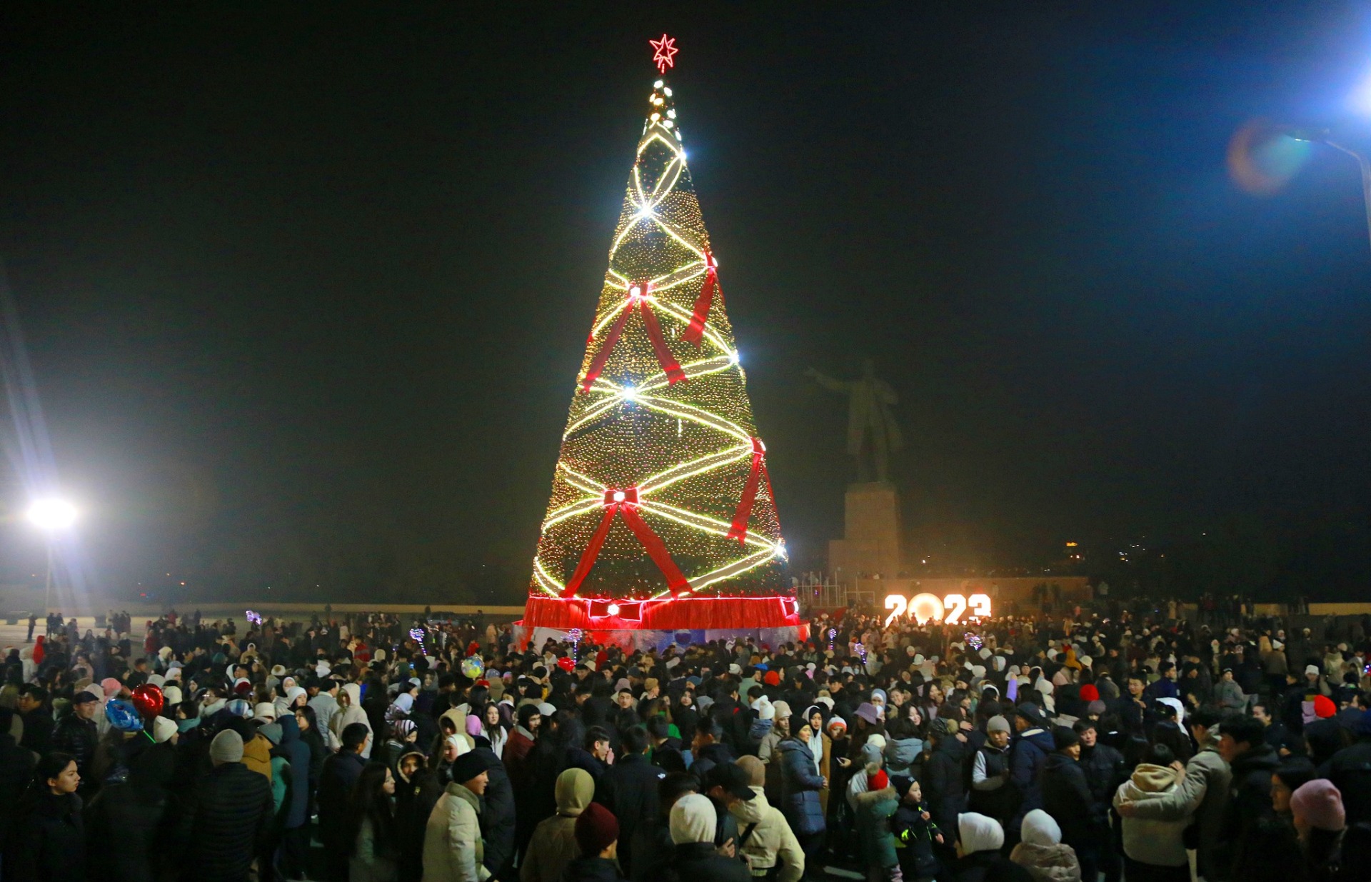 На центральной площади Оша зажгли новогоднюю елку. Об этом сообщает пресс-служба мэрии.
