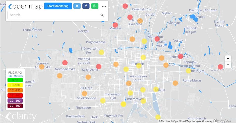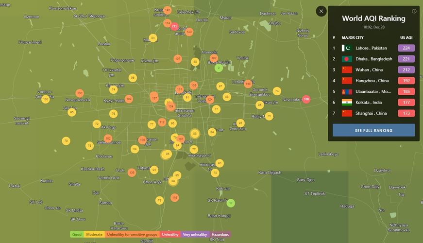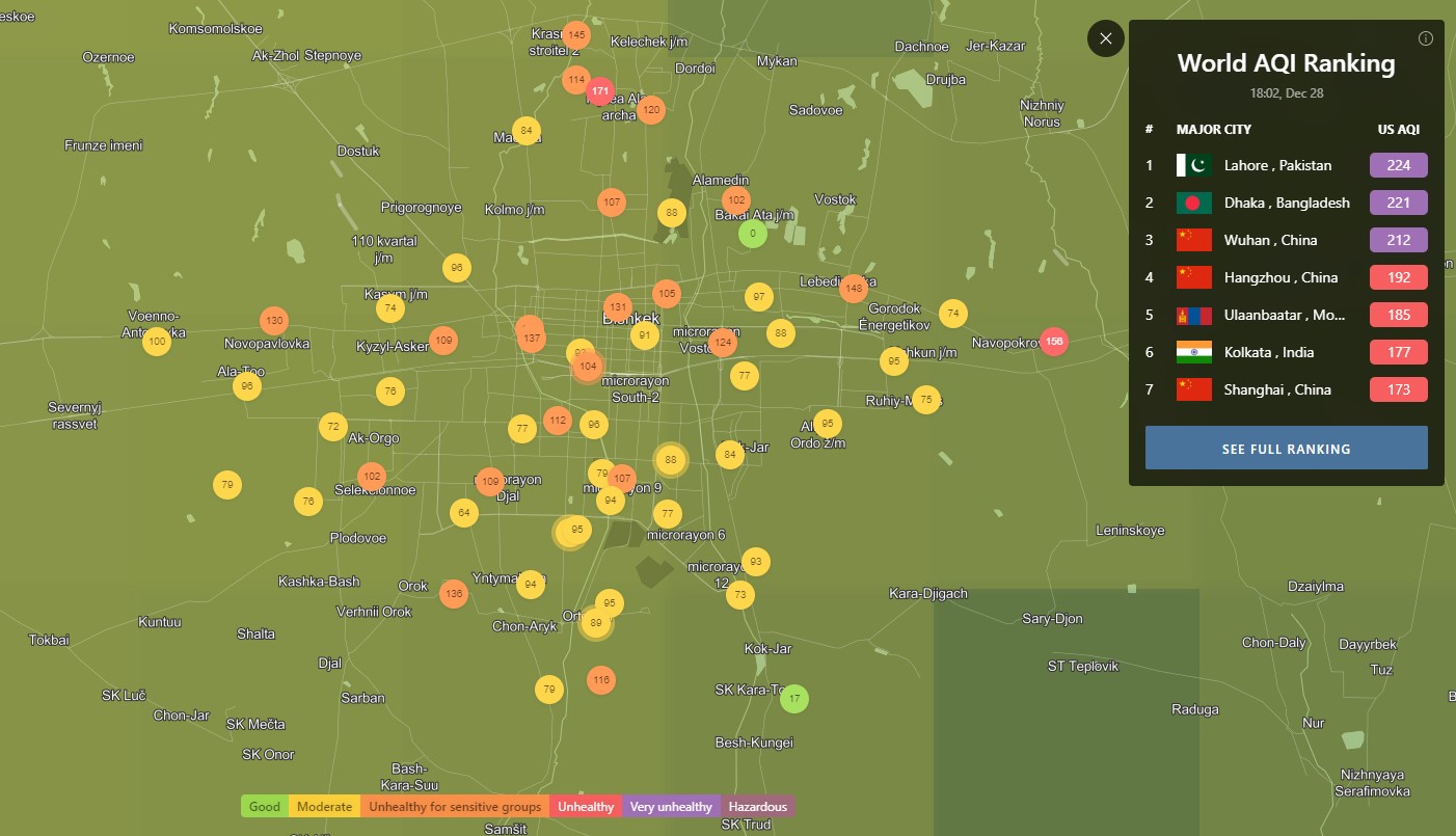 В рейтинге крупнейших городов мира по качеству воздуха World Air Quality Бишкек опустился на 25-е место.