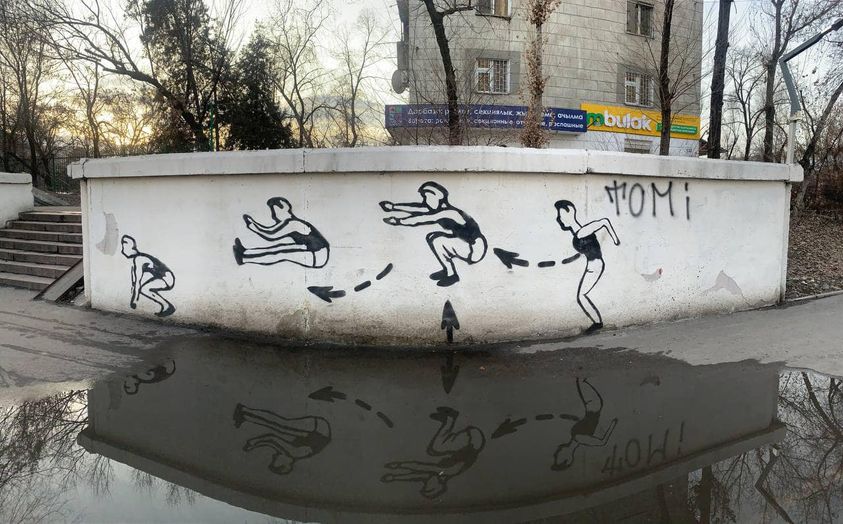 «Кто ходит по западному тротуару на Абдрахманова знает, что, не доходя до путепровода, есть место, в котором всегда появляется огромная лужа. Мы решили привлечь внимание к этому проблемному участку с помощью арт-интервенции», — сообщили они на своей странице в Facebook.