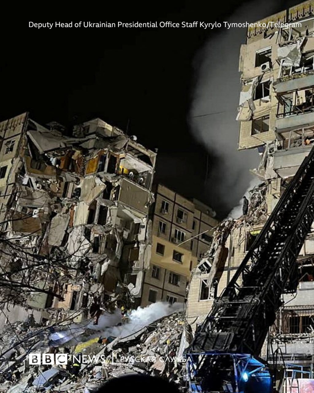 Из-под завалов разрушенного подъезда девятиэтажки спасены 15 человек, сообщает заместитель главы Офиса президента Украины Кирилл Тимошенко. Но под завалами остаются еще живые люди, отмечает заместитель мэра города Михаил Лысенко.