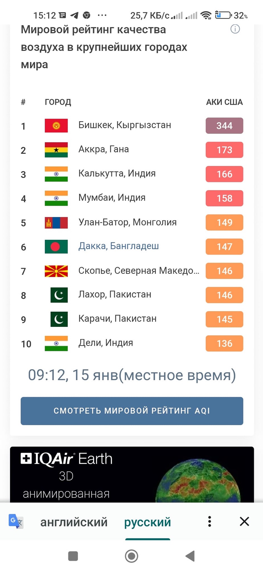 В рейтинге крупнейших городов мира по качеству воздуха World Air Quality Бишкек сегодня вновь на первом месте.