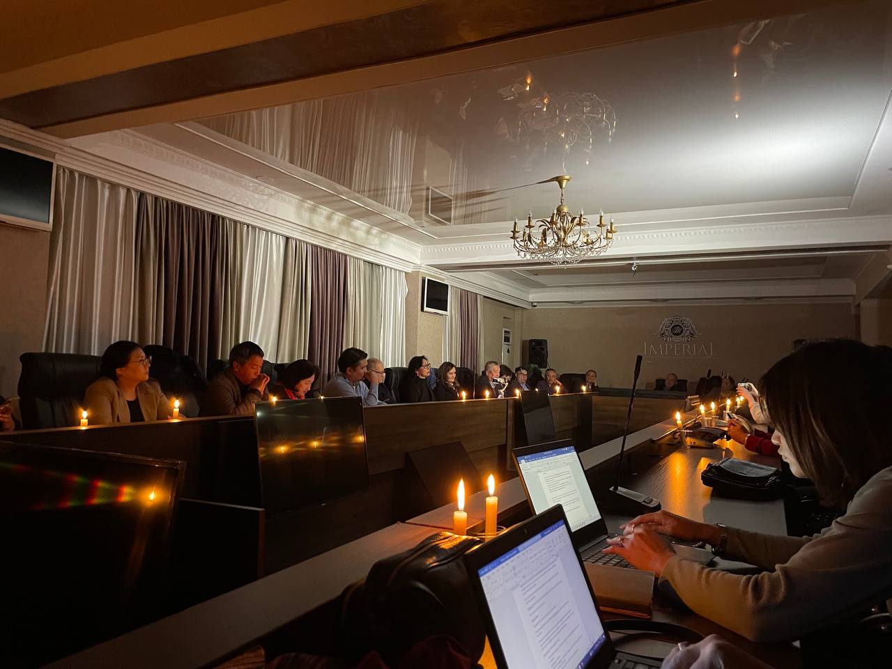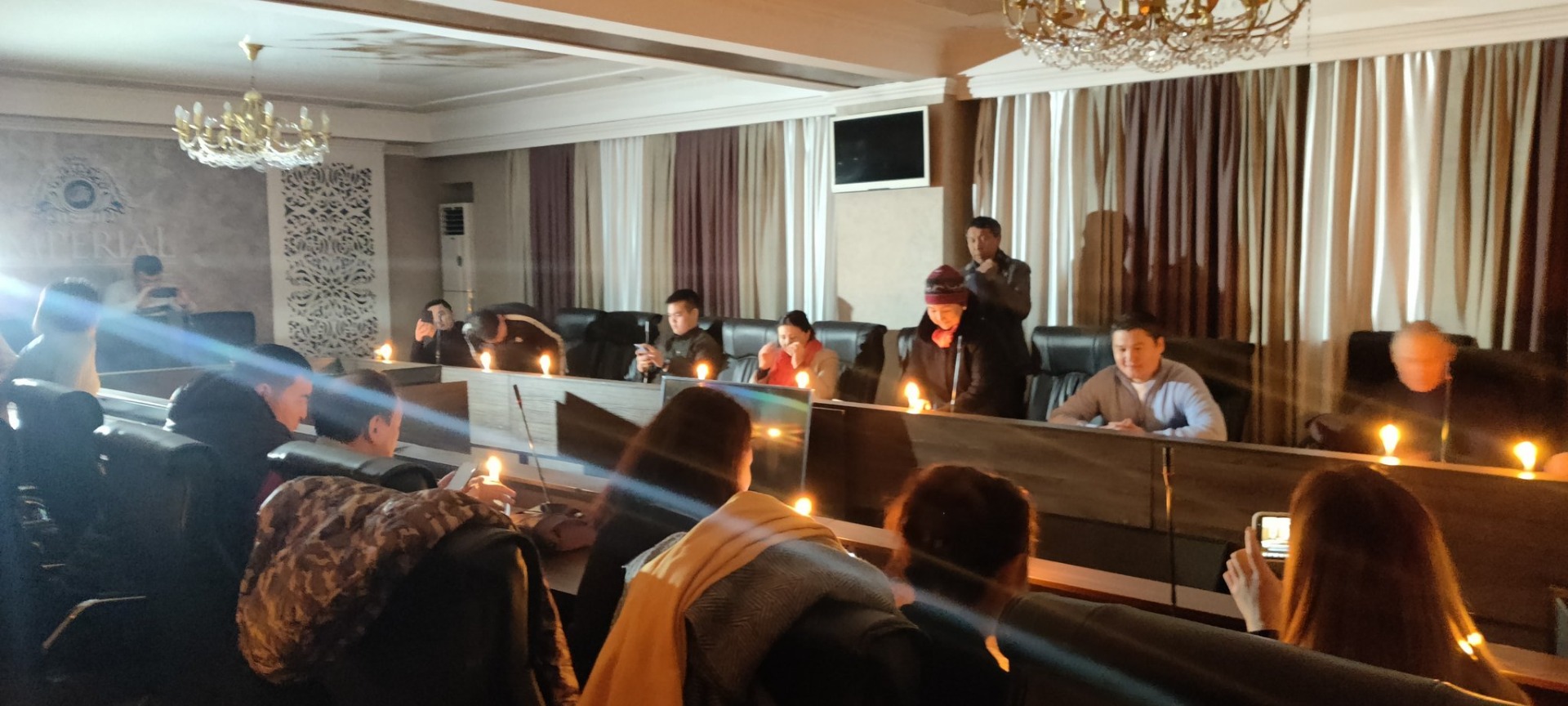 Круглый стол в одном из столичных отелей, на который собрались адвокаты и родственники членов комитета по защите Кемпир-Абадского водохранилища, проходит при свечах. В конференц-зале отключили электричество.