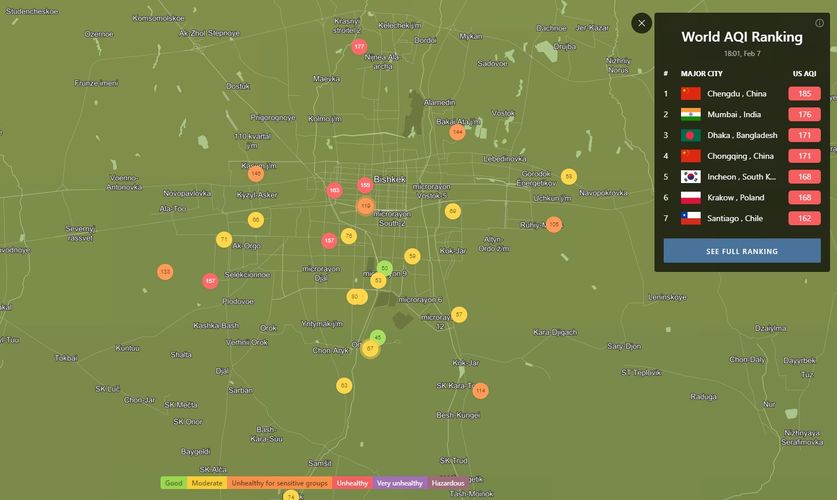 В рейтинге крупнейших городов мира по качеству воздуха World Air Quality Бишкек опустился на 40-е место.