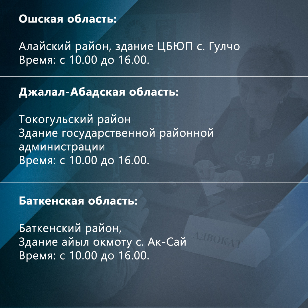 В Кыргызстане пройдет акция по оказанию бесплатной консультационно-правовой помощи населению. Об этом сообщили в Службе юридической помощи при Минюсте.
