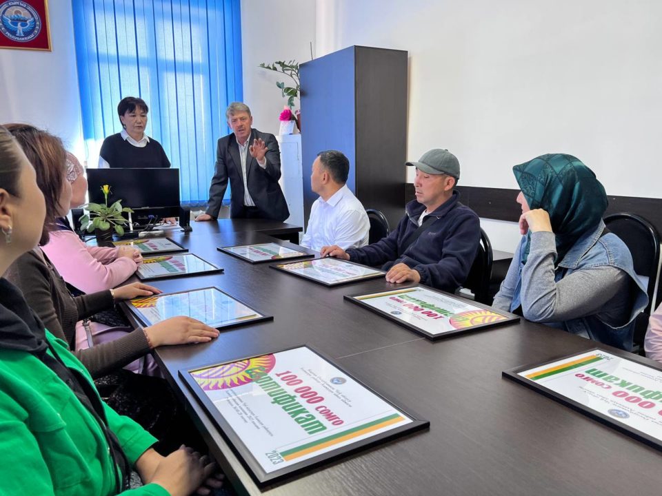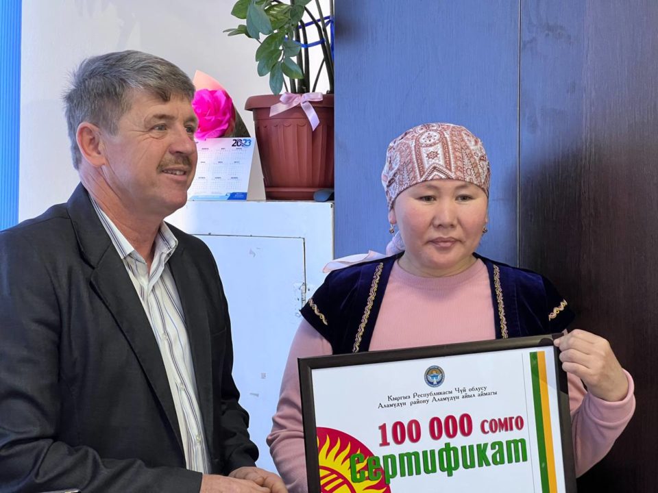Уточняется, что участники программы планируют использовать средства на открытие бизнеса в сфере скотоводства, торговли, швейного производства и интернет-продажи. Сертификаты вручил председатель местного кенеша Алексей Филимоненко.