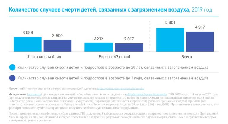 В 2019 году в 52 странах Европы и Центральной Азии от причин, связанных с загрязнением воздуха, погибли более 5 тысяч 800 детей и подростков.