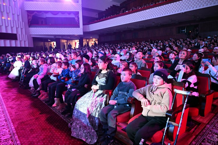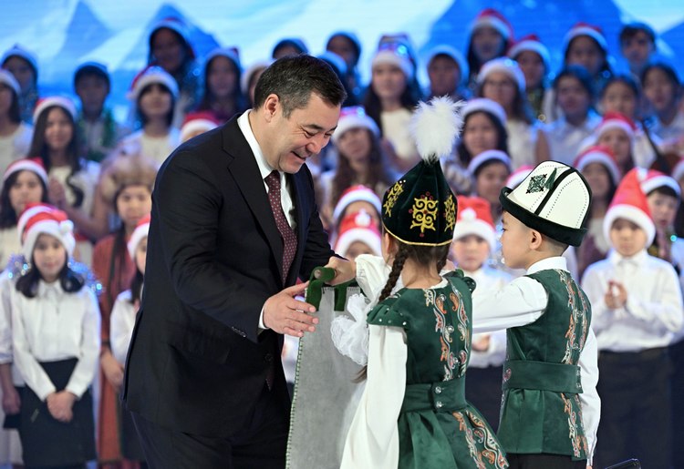 Сегодня президент Садыр Жапаров принял участие в традиционном новогоднем представлении для детей в Кыргызской национальной филармонии имени Токтогула Сатылганова.