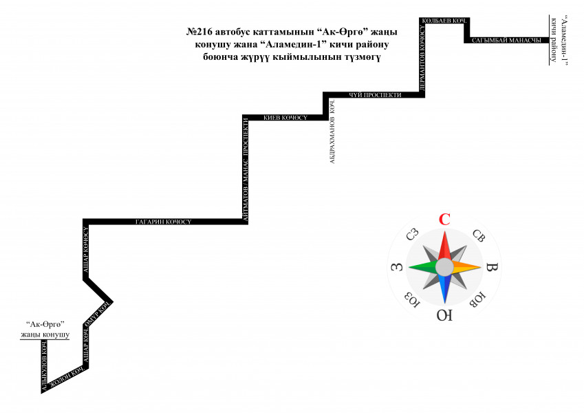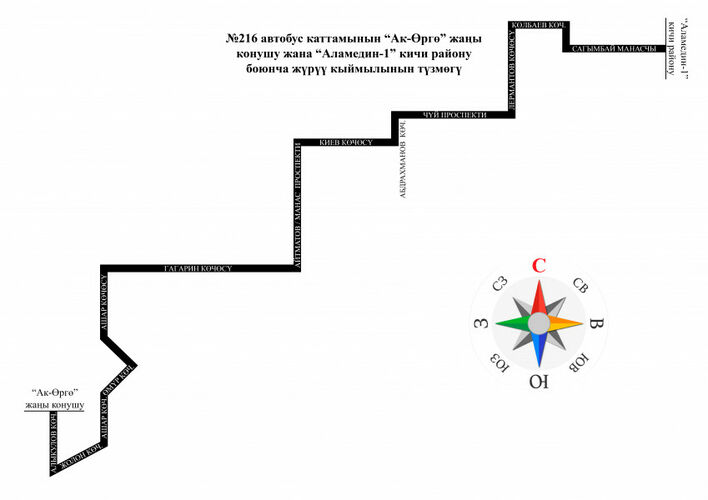 В Бишкеке запустили новый автобусный маршрут № 216. Ранее на этой линии курсировал микроавтобус. Конечные остановки маршрута расположены в новостройке «Ак-Орго» и микрорайоне «Аламедин-1». На линии работают 26 автобусов, интервал движения — 7-10 минут.