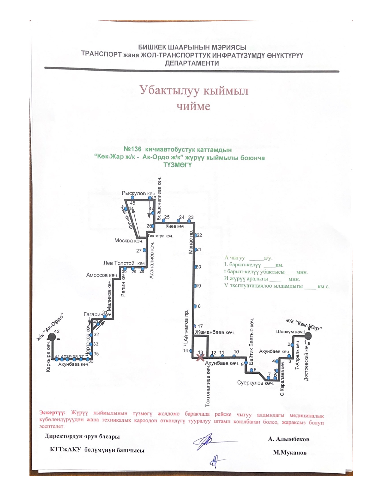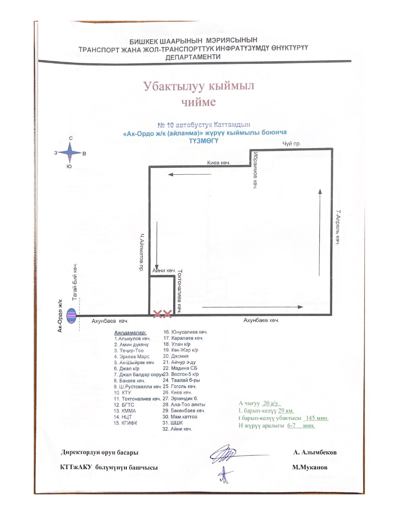 - № 131 — по улицам Ахунбаева, Малдыбаева до улицы Суеркулова и обратно;