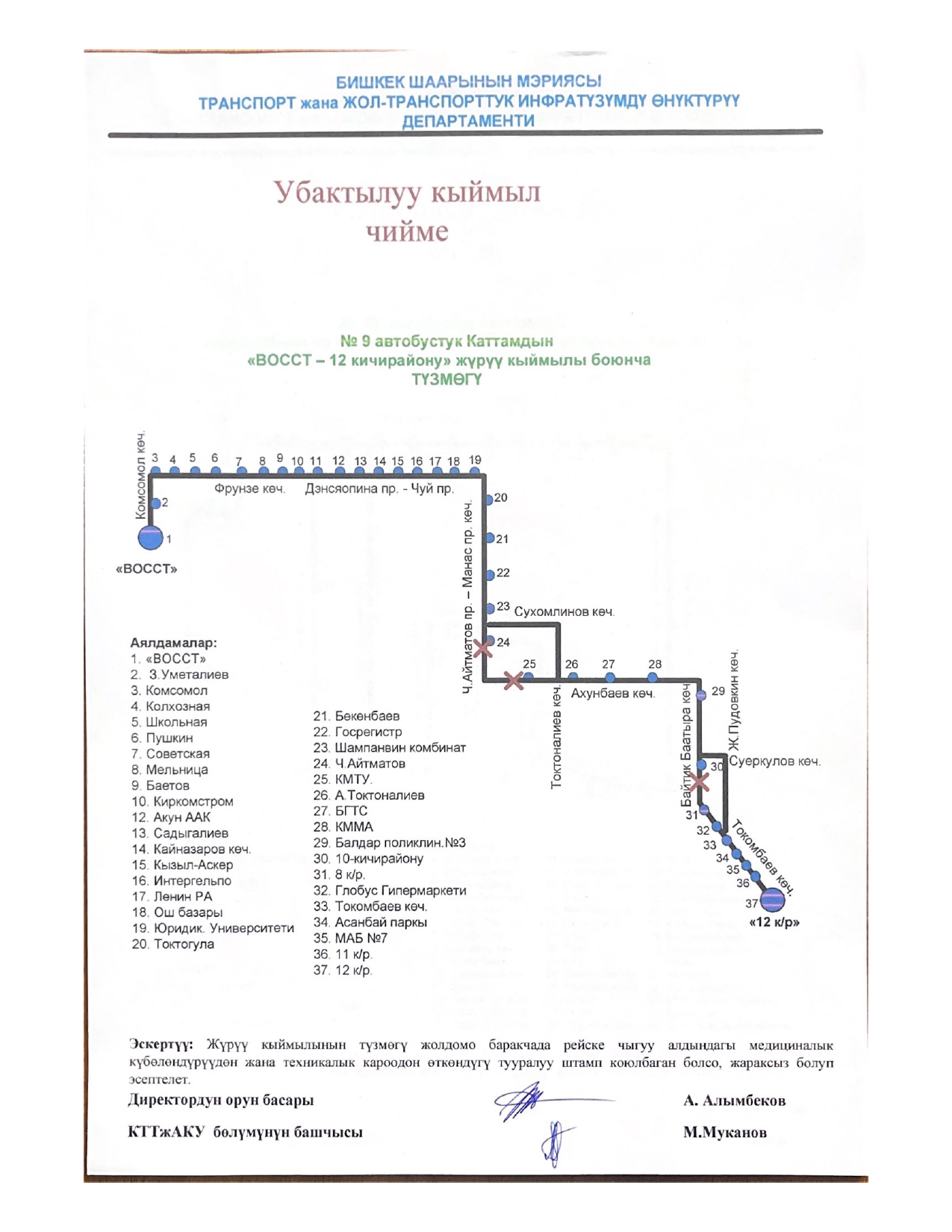 - № 9 — по улицам Токтоналиева и Сухомлинова;