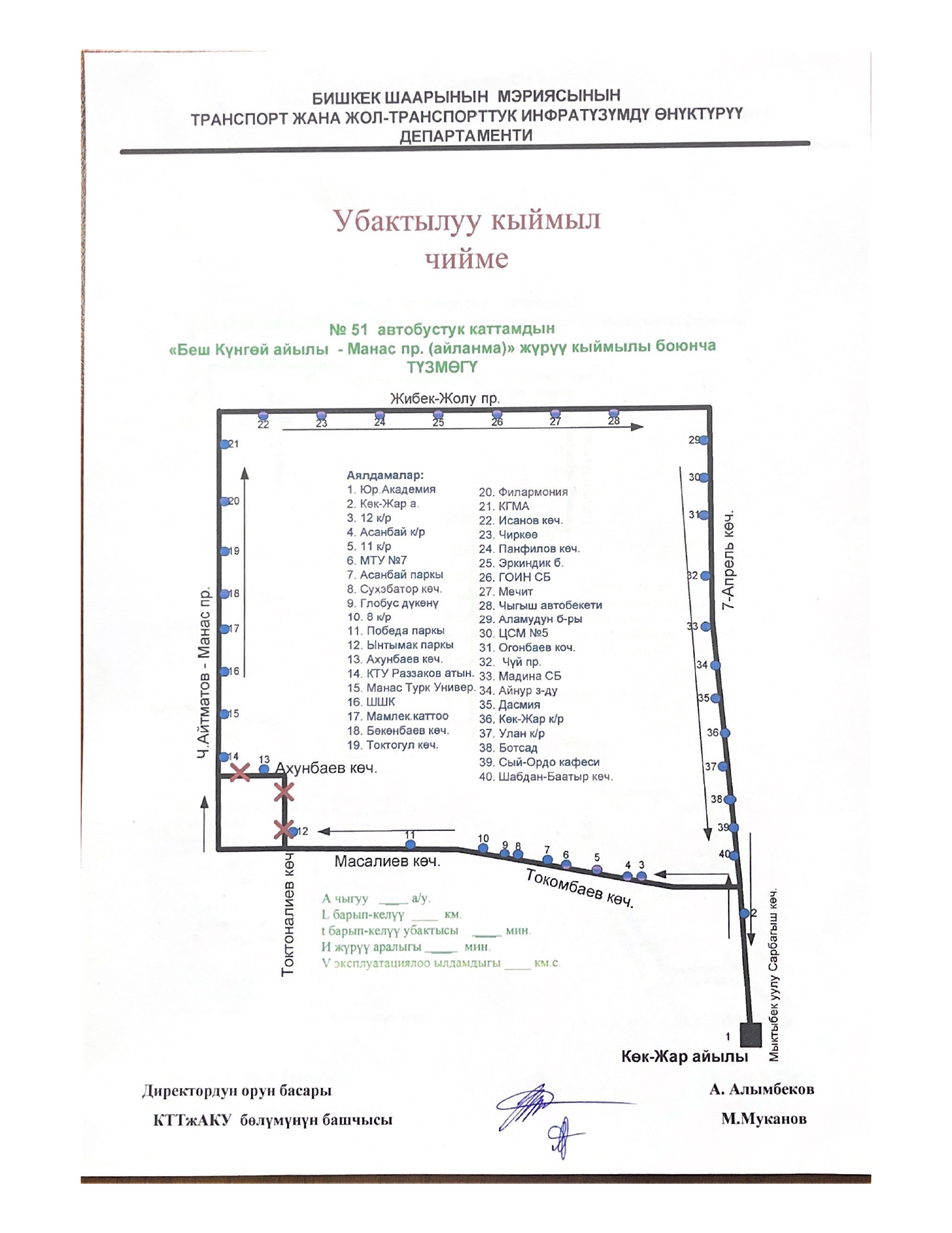 - № 51 — по улице Масалиева и проспекту Чингиза Айтматова;