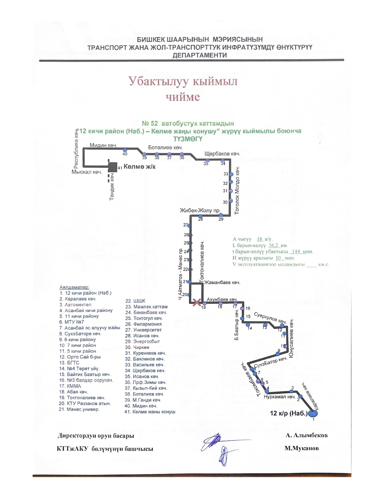 - № 52 — по проспекту Чингиза Айтматова, улицам Жаманбаева и Токтоналиева;