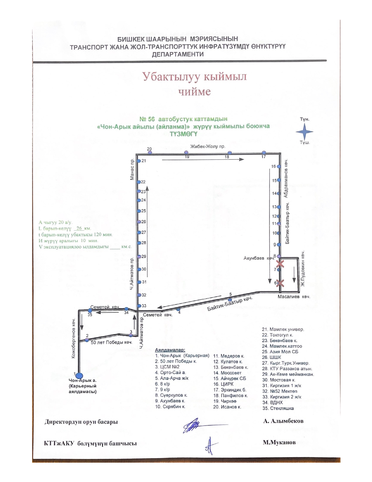 - № 56 — по улицам Ахунбаева, Жукеева-Пудовкина и Масалиева;