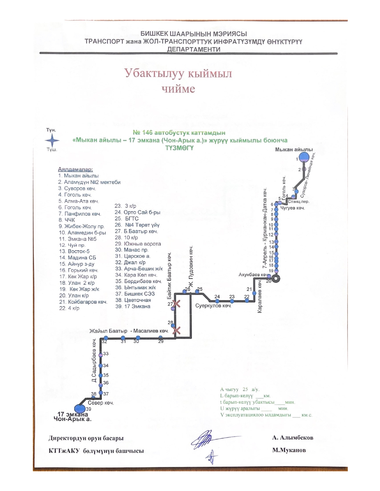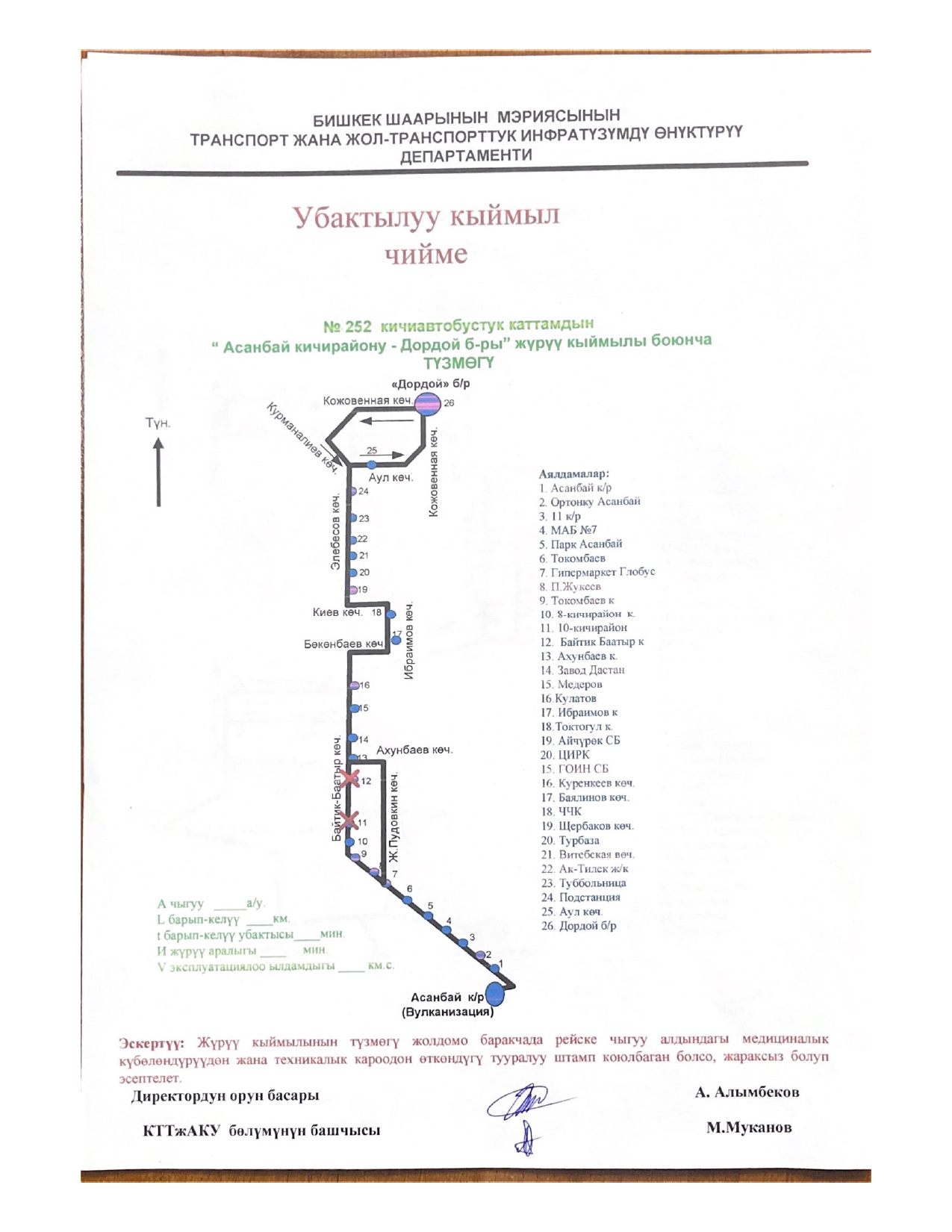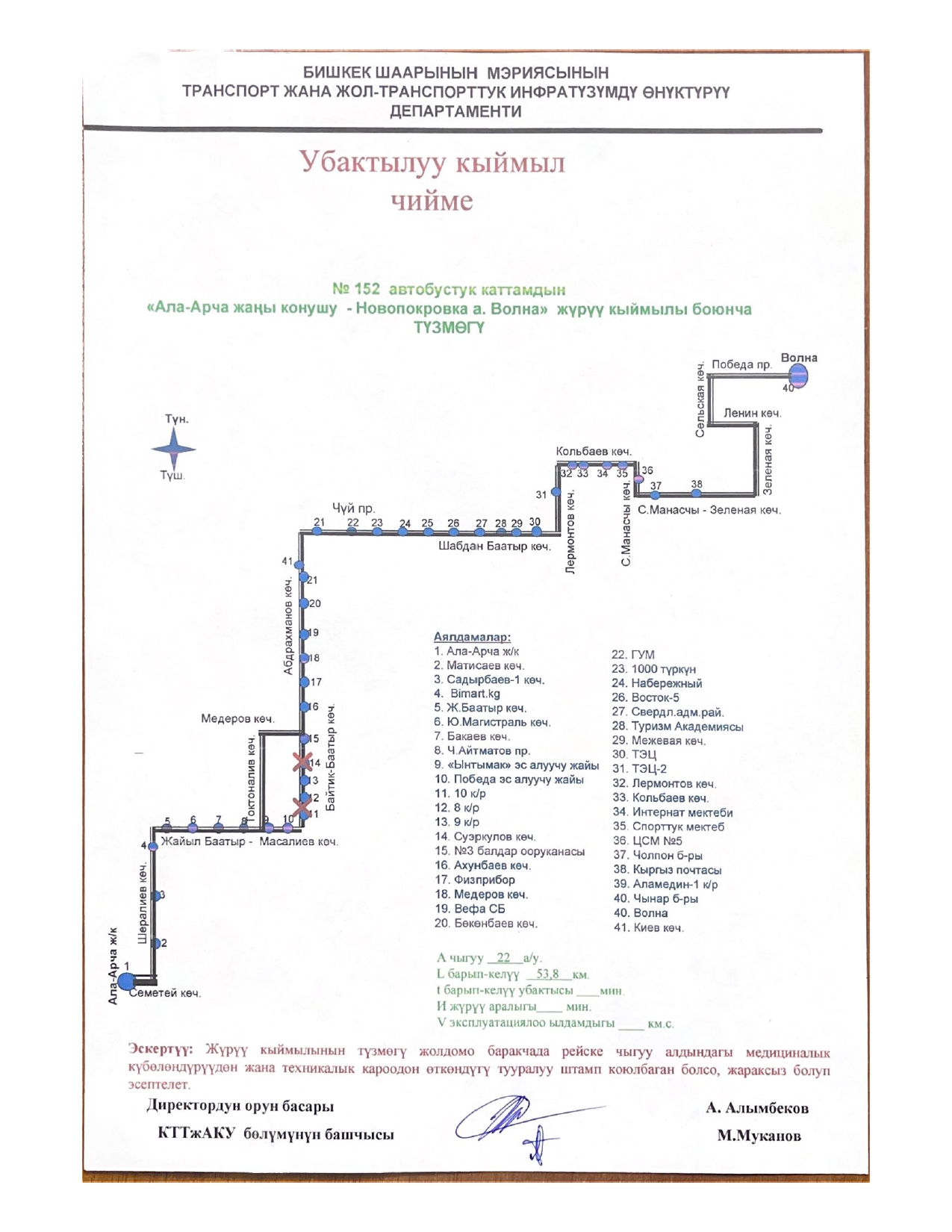 № 15 — от микрорайона «Асанбай» до микрорайона «Аламедин-1».
