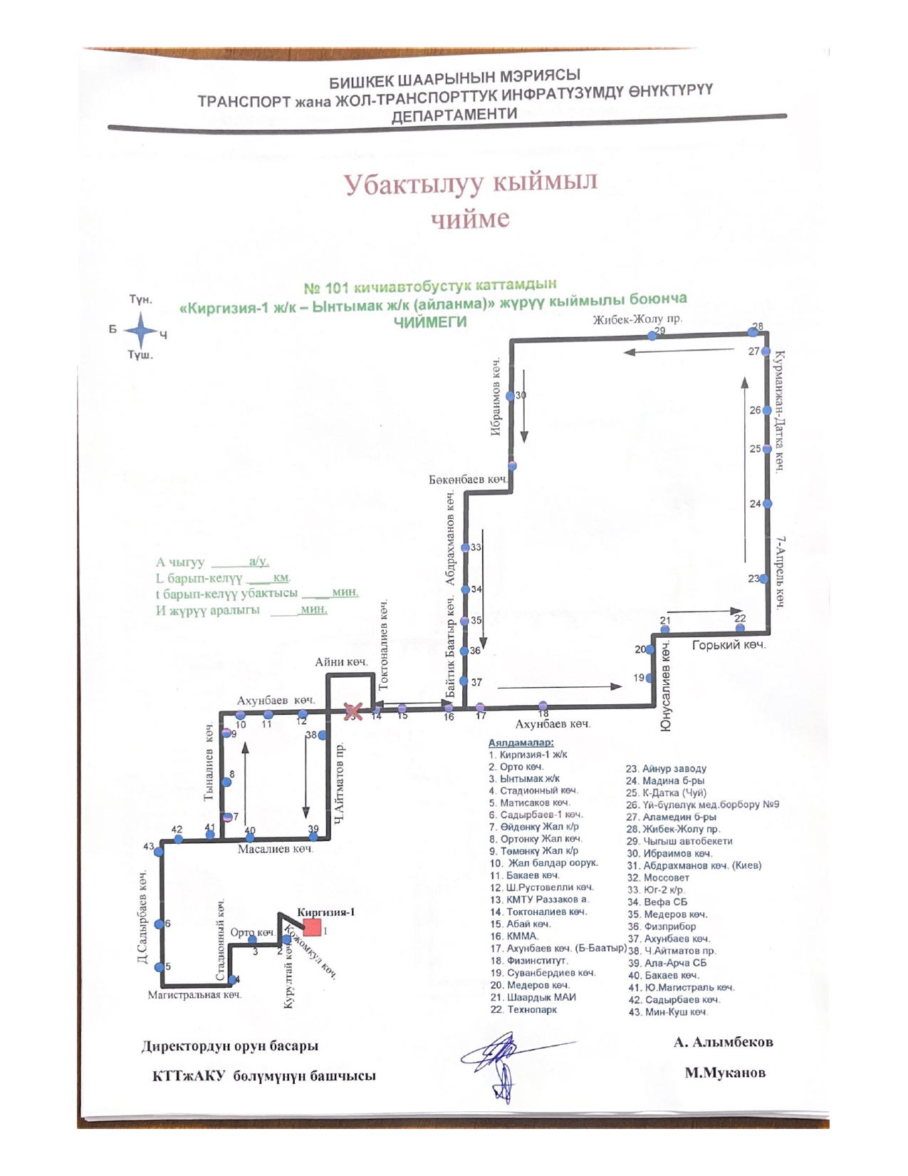 - № 101 — по проспекту Айтматова, улицам Айни и Токтоналиева;