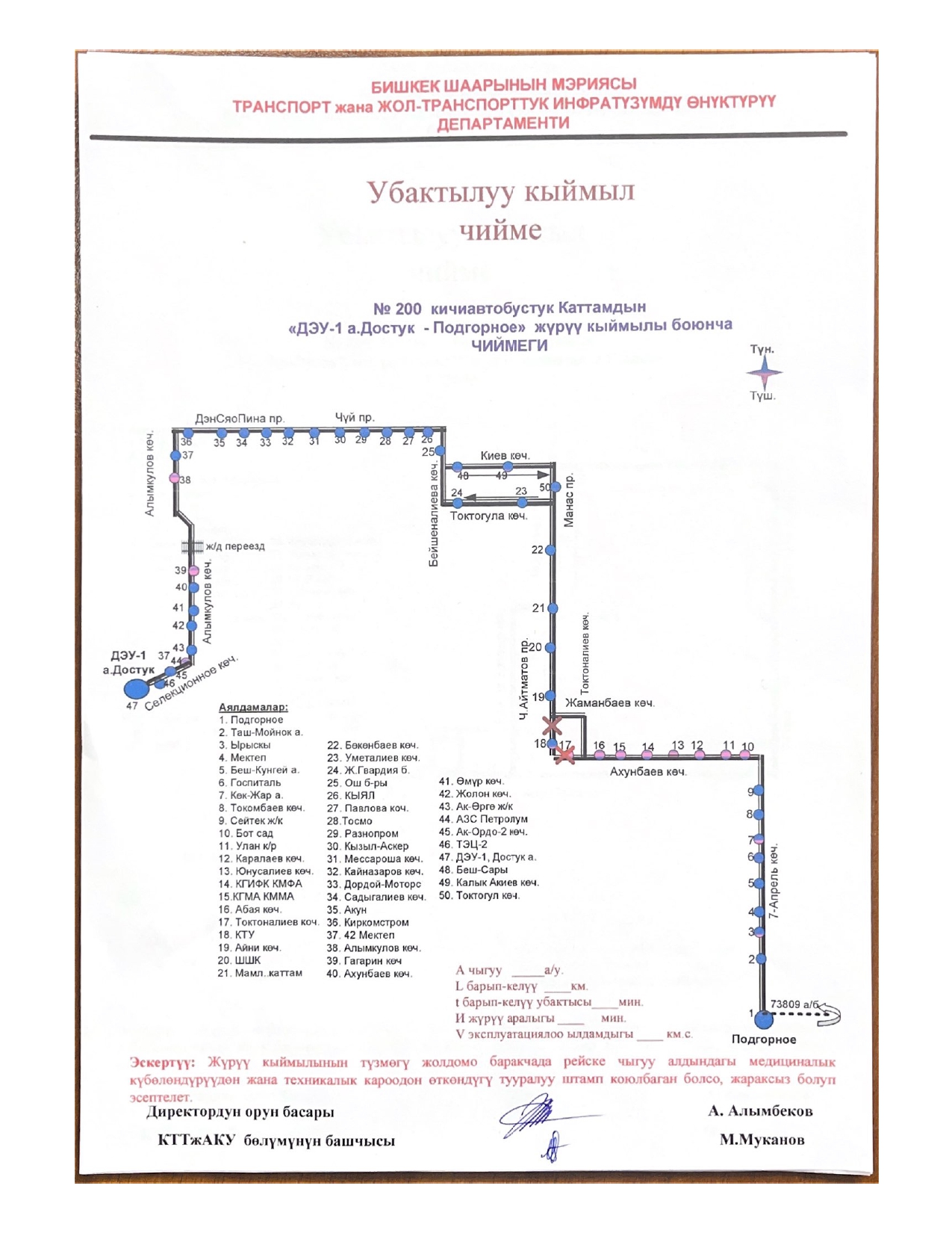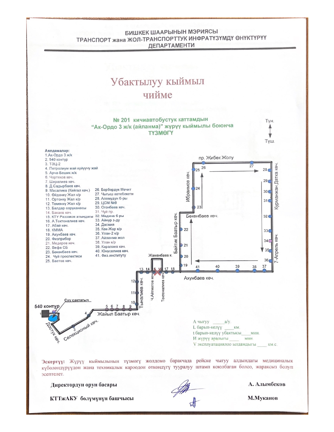- № 201 — по проспекту Айтматова, улицам Жаманбаева и Токтоналиева;