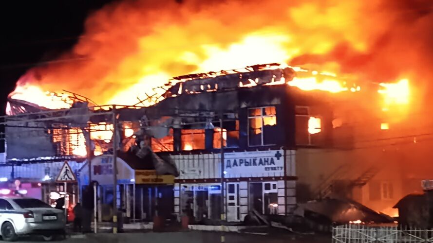 В Баткене полностью сгорели большой магазин, аптека и небольшой павильон. Об этом 24-kg.com сообщил читатель и прислал видео с места происшествия.