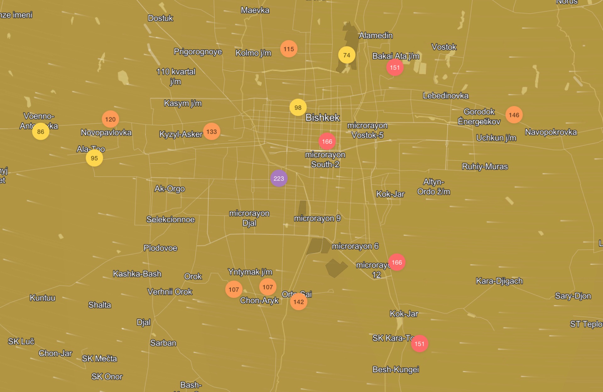 В рейтинге крупнейших городов мира по качеству воздуха World Air Quality на 18.00 Бишкек находится на 22-м месте.