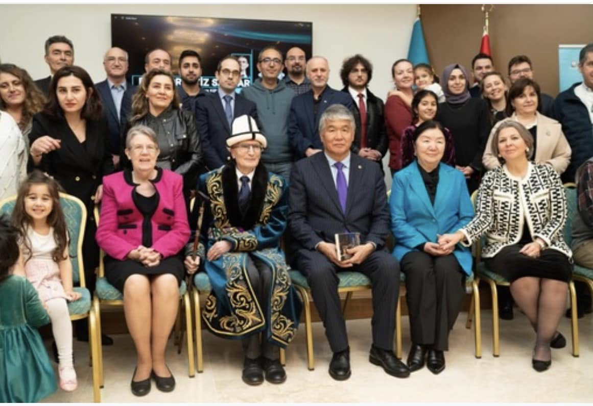 Почетное звание в виде нагрудного знака ученому вручил генеральный секретарь ТЮРКСОЙ Султан Раев. В честь этого Азизу Санжару также переданы символические подарки, олицетворяющие единство тюркских народов. Среди них — кыргызский ак калпак, казахский ханский чапан, узбекский пояс, азербайджанский нагрудной знак «Хары-Бюльбюль», турецкий бастон (посох) как символ аристократичности, а также сборник стихов туркменского поэта Махтумкули.