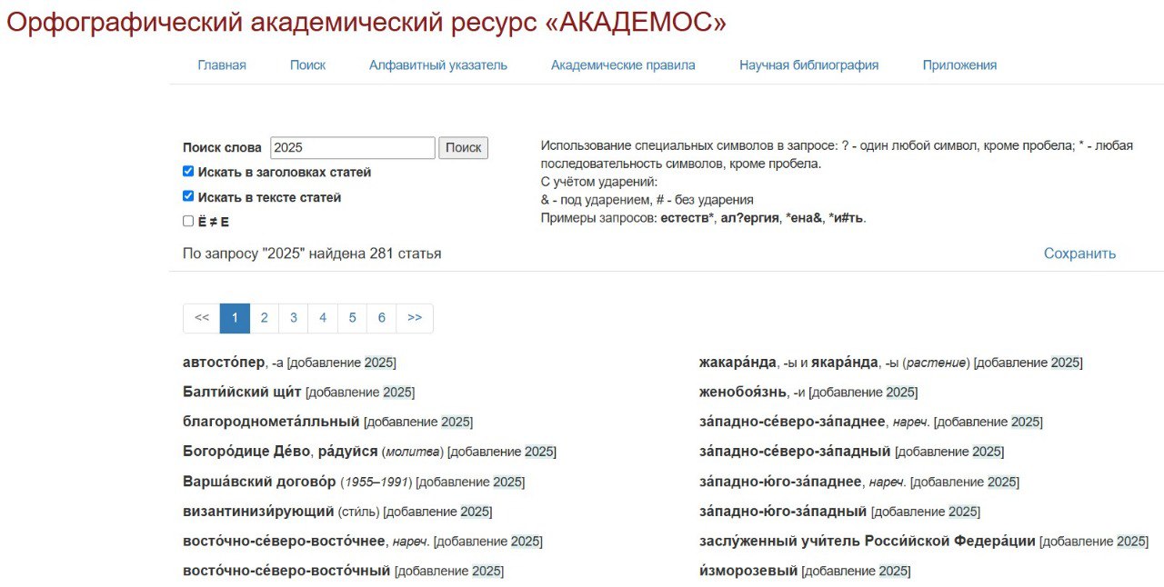 Уточняется, что сотрудники Института русского языка имени В.Виноградова РАН с начала 2025-го добавили в орфографический словарь «Академос» 281 новое слово.