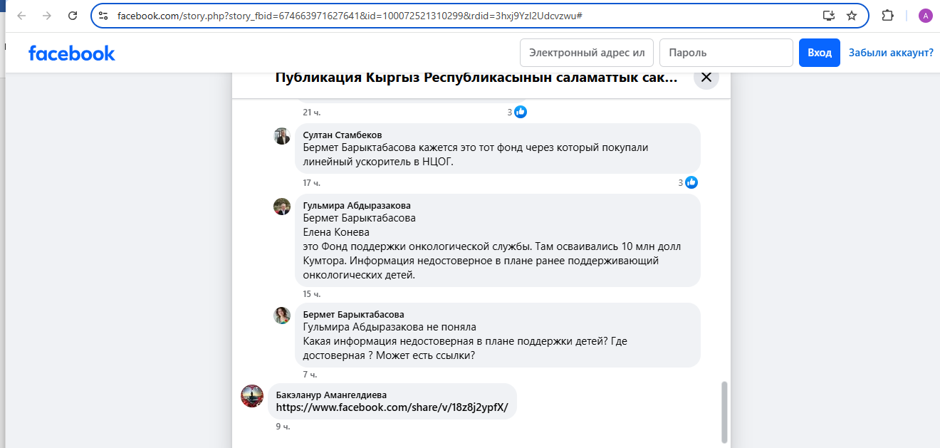 Напомним, в 2017 году по соглашению между золотодобывающей компанией и правительством создали фонд поддержки онкологической службы, его учредителем был Минздрав. «На этом настояла Centerra для исключения коррупционных рисков. На его счет был перечислен первый транш», — рассказывала в 2021-м член попечительского совета НЦОГ Гульмира Абдыразакова.