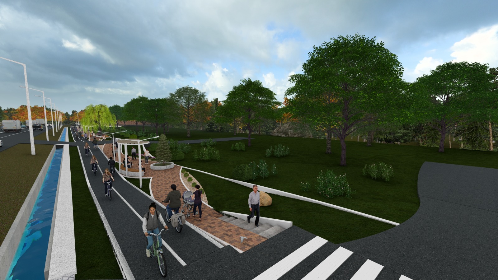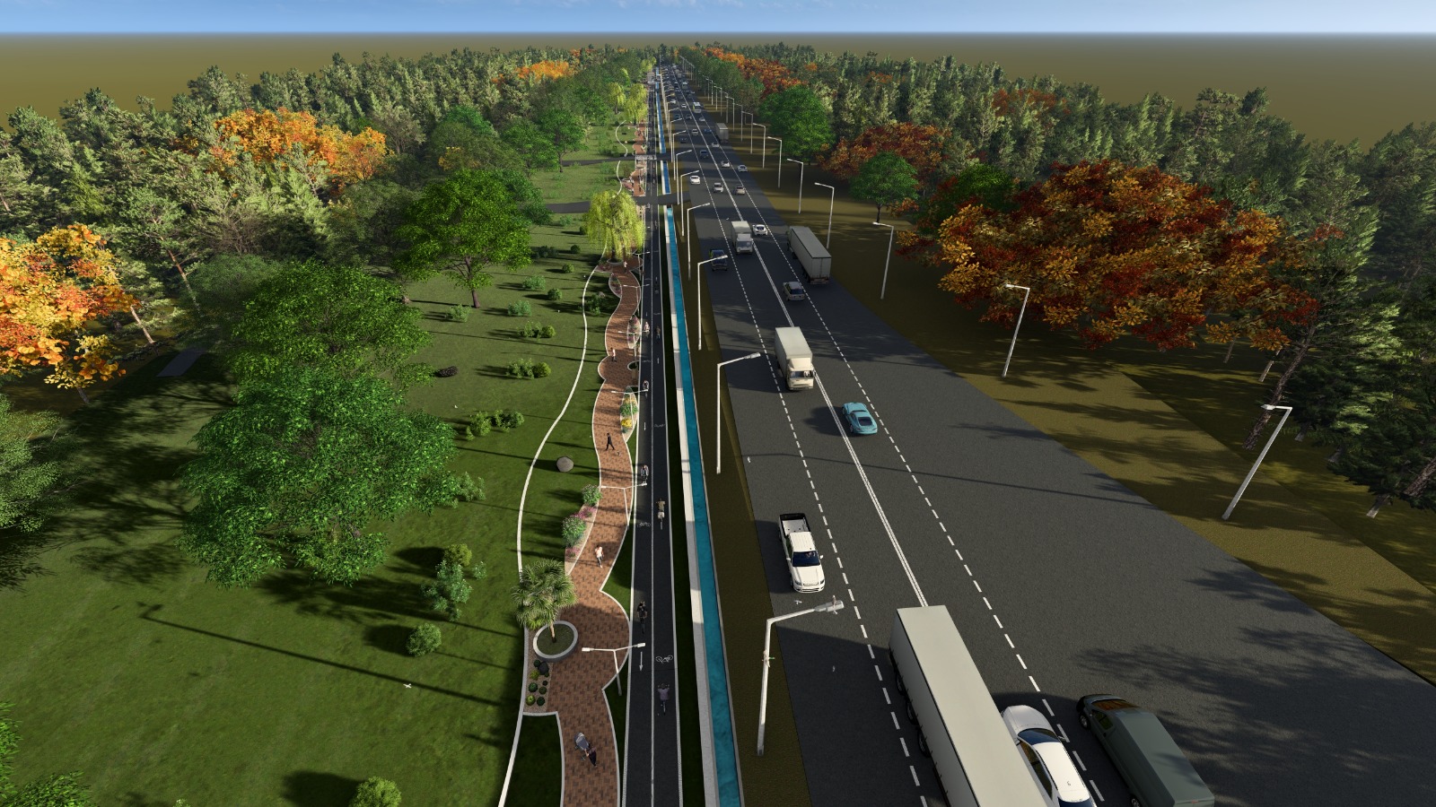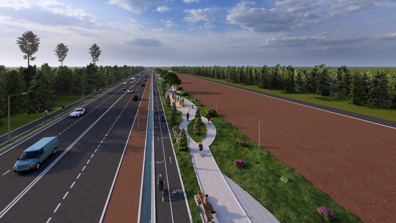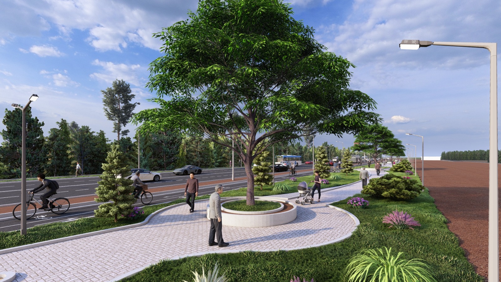 В рамках проекта на участке протяженностью 1,8 километра будут построены велодорожка, тротуар, остановки, парк, установлены скамейки, освещение и проведено озеленение.