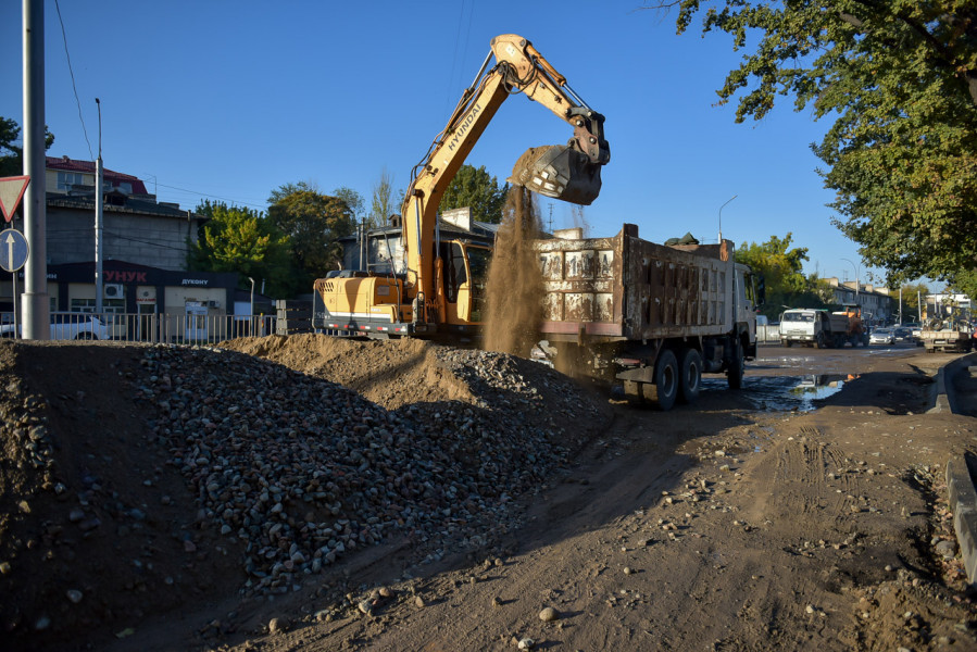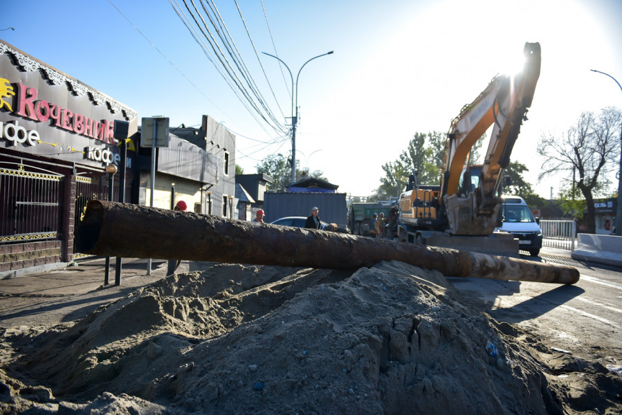 Глава города посетил проспект Дэн Сяопина, где проводится реконструкция дороги и тротуара от улицы Фучика до улицы Алыкулова (северная сторона). Параллельно заменяются и водопроводные сети.