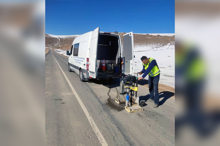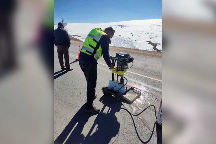 В Таласской области на высоте 3 тысячи 300 метров над уровнем моря проведен отбор образцов асфальтобетонного покрытия на перевале Отмок. Работы выполнили сотрудники Республиканского центра сертификации в строительстве при Министерстве строительства, архитектуры и жилищно-коммунального хозяйства.
