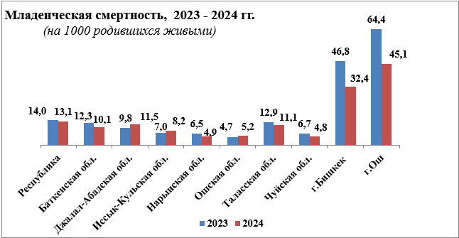 В Кыргызстане показатели младенческой смертности, несмотря на некоторое снижение, по-прежнему остаются на высоком уровне. Об этом говорится в материалах Центра электронного здравоохранения.