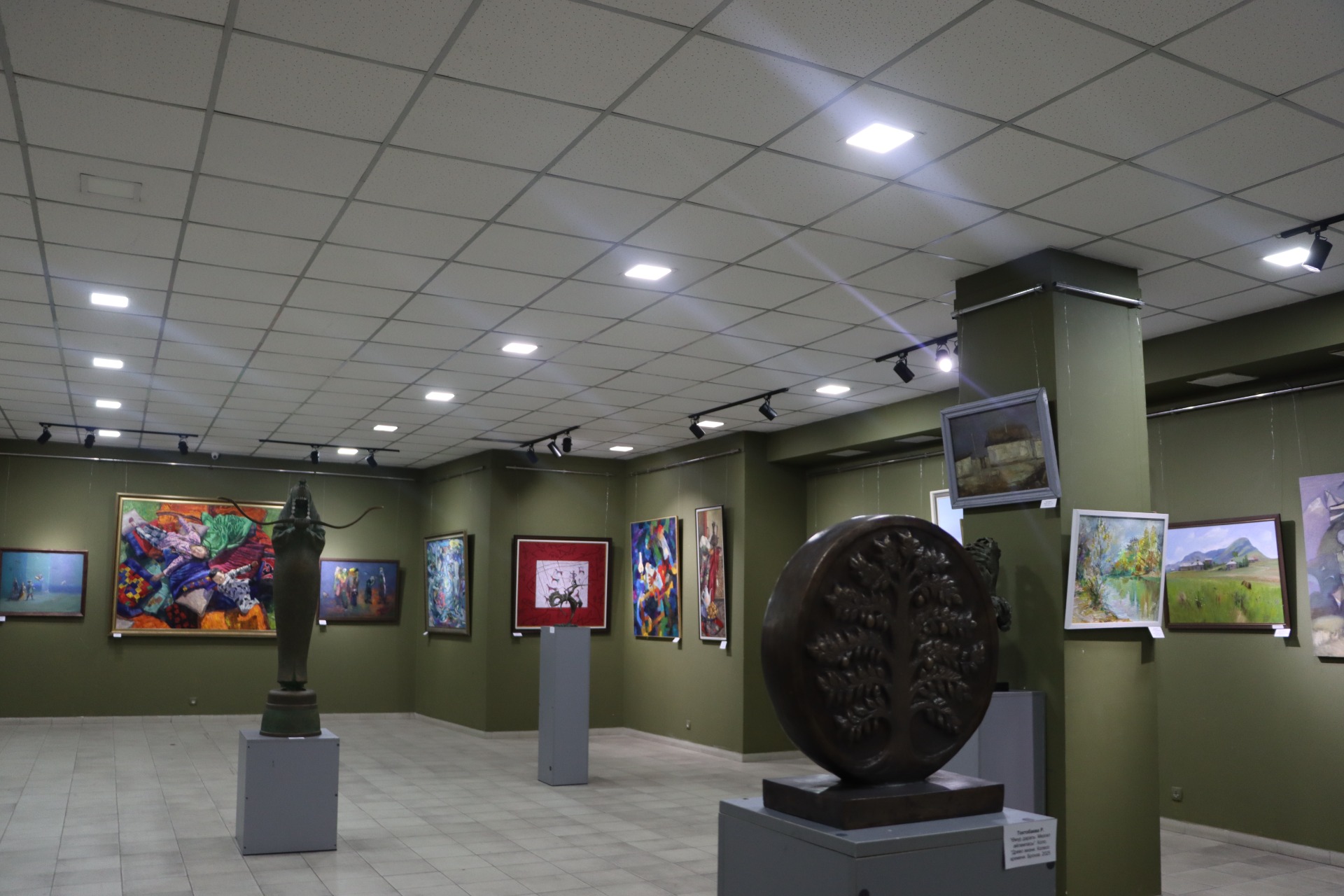 На выставке выставили более 150 работ и распределили на два этажа. На первом расположены живопись и скульптуры, а на втором — графика и декоративно-прикладное искусство. В работах представлены разные направления и жанры: от реалистичных до авангардных композиций. Скульпторы использовали разные материалы как бронзу, камень и пластик.