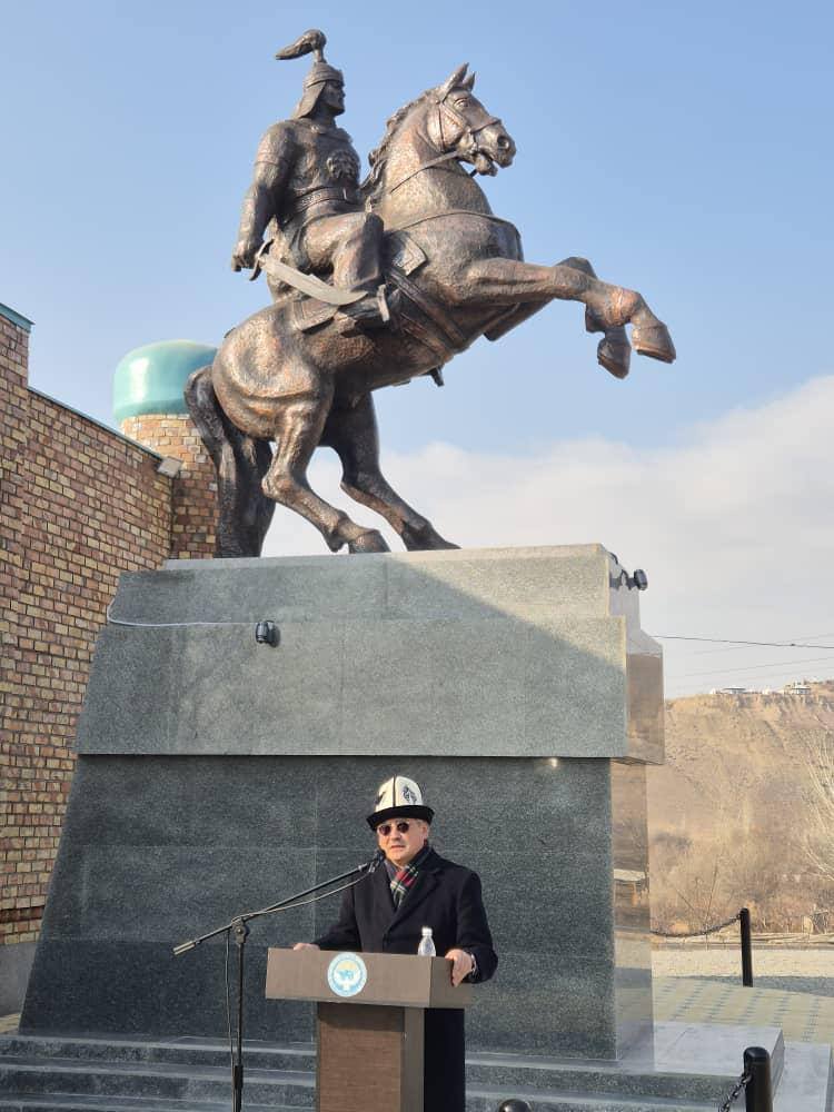 В Токтогуле установили памятник Садыр хану (Садыру Арзымат уулу), одному из выдающихся лидеров кыргызов XVIII века. Открытие стало частью подготовки к празднованию его 310-летнего юбилея, который в этом году отмечается по решению кабмина.