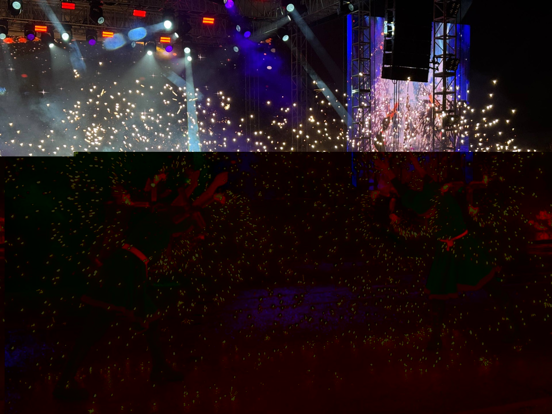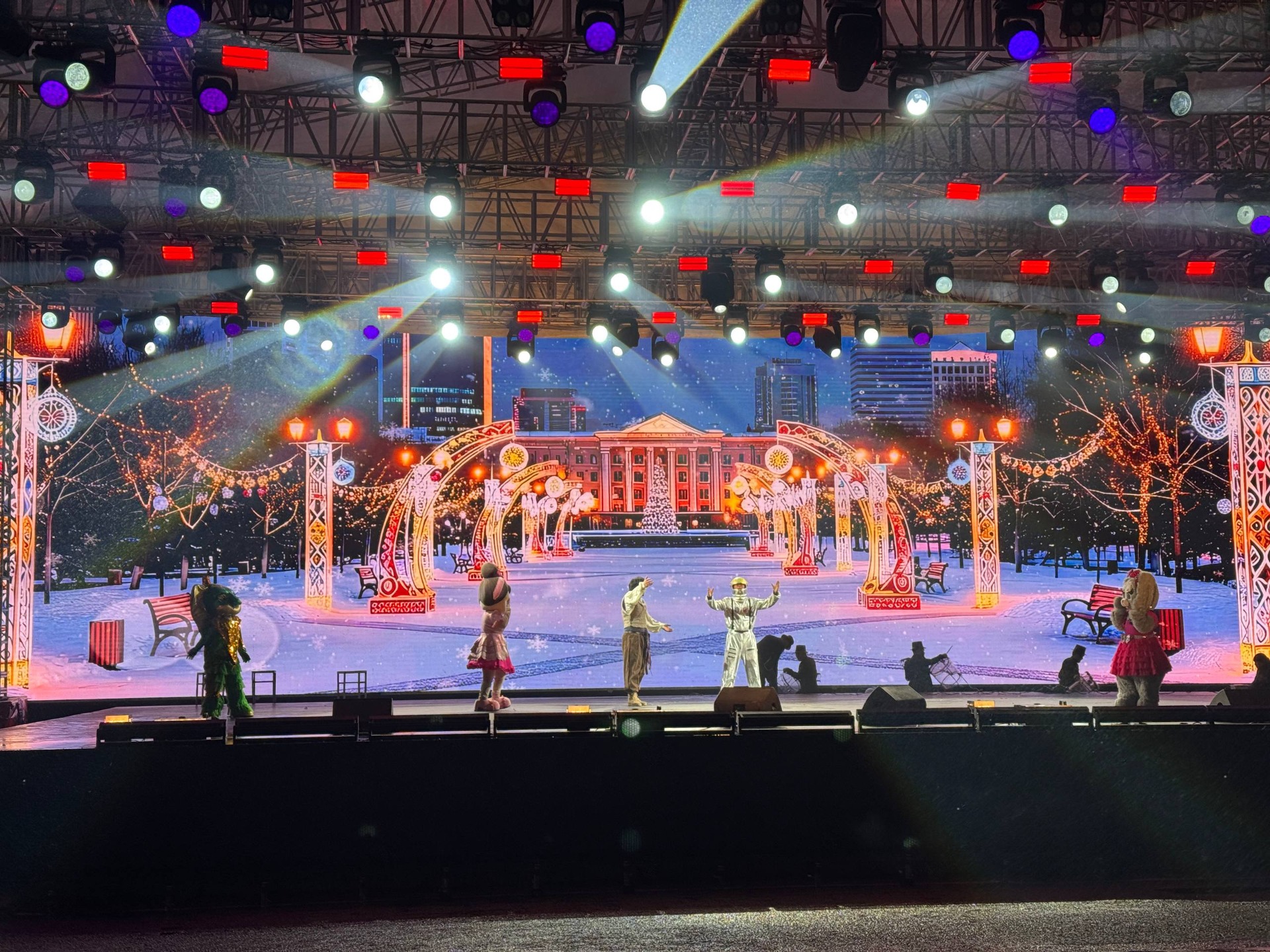 Концертная шоу-программа открылась песней «Бишкегим», ставшей гимном столицы, ее исполнил народный ансамбль «Семетей». А самой яркой звездочкой вечера стала Насыйкат Баймырзаева, девочка учится в школе-интернате для слепых и слабовидящих детей. Она готовится ко второй сложной операции на глаза, но несмотря на это, юная певица все равно пришла поздравить бишкекчан с наступающим Новым годом.