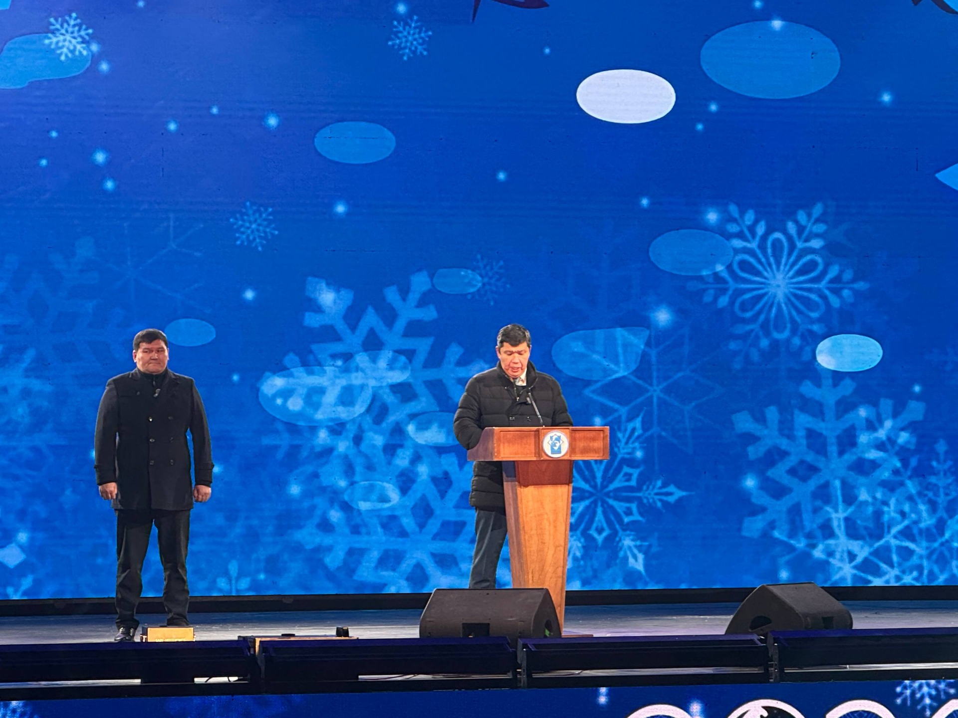 Несмотря на морозную погоду, центральная площадь была заполнена горожанами и гостями столицы. Мэр рассказал о достижениях муниципалитета, развитии и преображении Бишкека.
