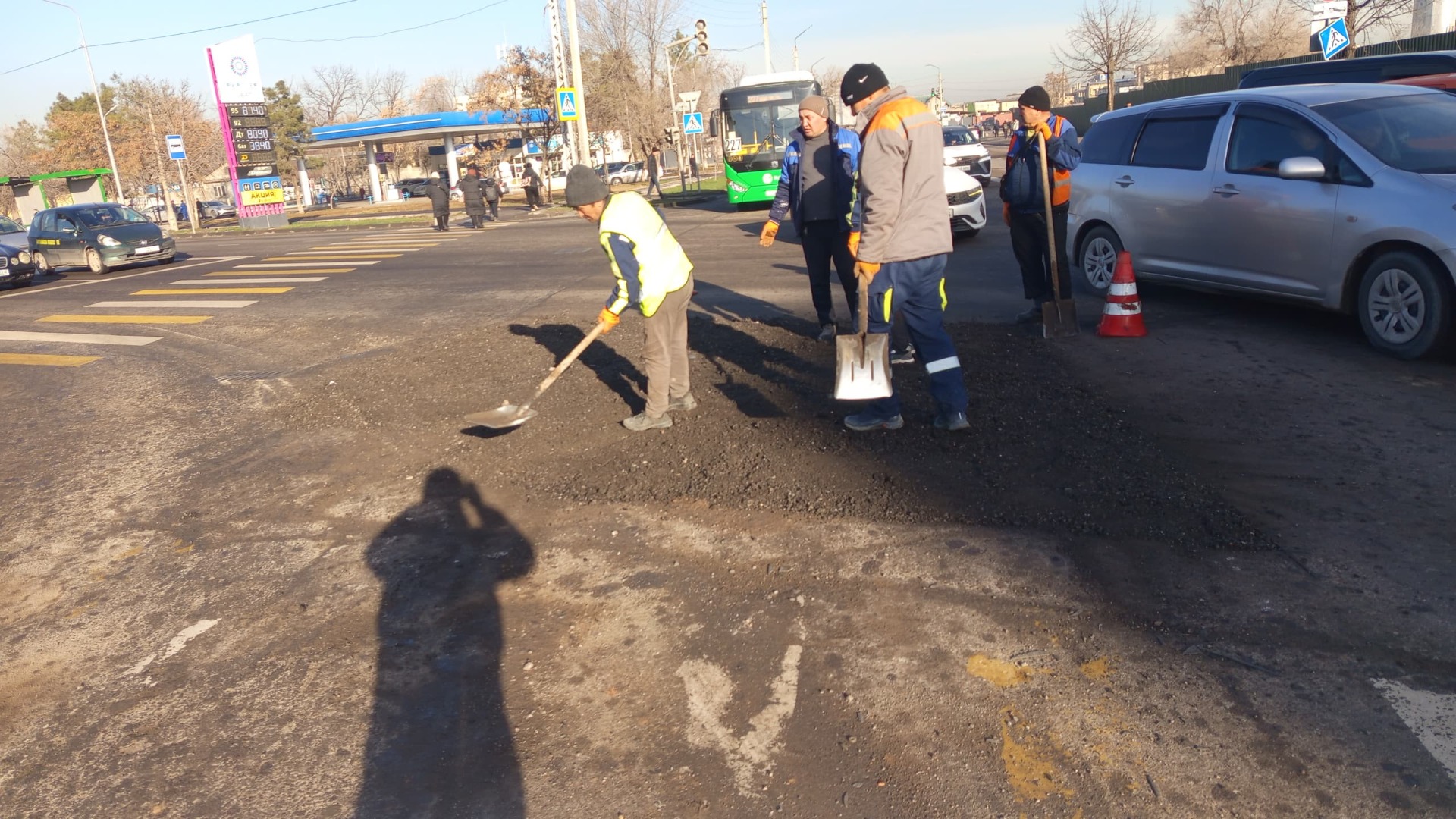 УПСМ сообщило о восстановлении дорожного покрытия на пересечении улиц Московской и Кулиева в Бишкеке, где ранее произошел провал асфальта.