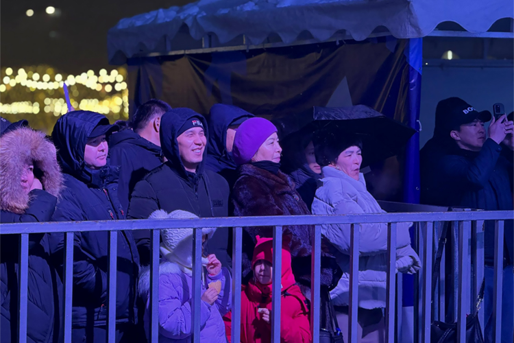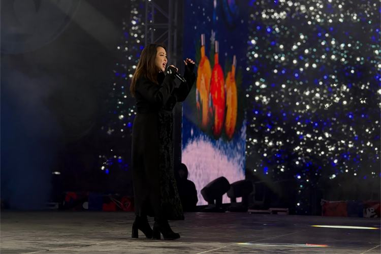 Для жителей и гостей столицы с праздничной программой выступил ансамбль песни и танца «Семетей». Артисты представили эстрадные, фольклорные и народные номера, создав на главной площади города атмосферу праздника и новогоднего настроения.