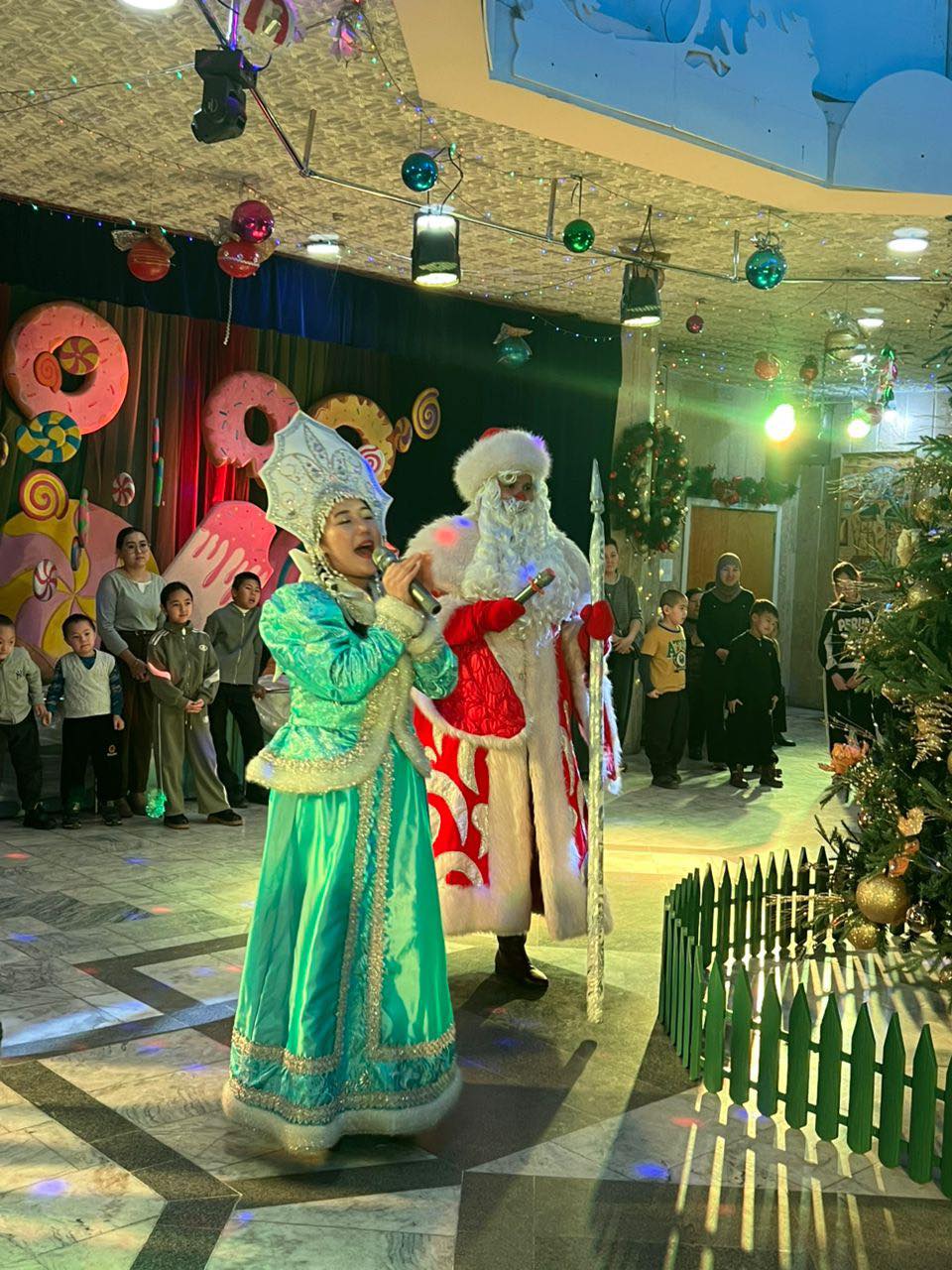 «Дети вместе с Дедом Морозом водили хороводы вокруг елки и активно участвовали в играх. Кроме шоу-программы, им показали спектакль «Новогодние приключения Актана и Акылай». Артисты подарили малышам праздничное настроение и веру в новогоднее чудо», — говорится в сообщении.