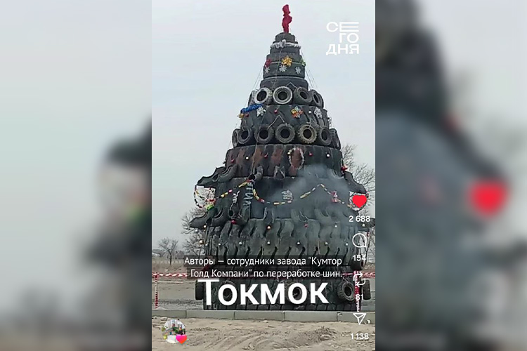 Но внимание всего Кыргызстана привлекла не она, а другая елка. На одном из городских заводов, занимающихся производством шин, установили необычную конструкцию. Получилось очень необычно. В официальном сообщении мэрии города отметили: «Эта елка стала результатом креативной деятельности завода по производству шин, расположенного в данном микрорайоне».Елка в Кара-Балте. Было две, осталась одна, но какая!