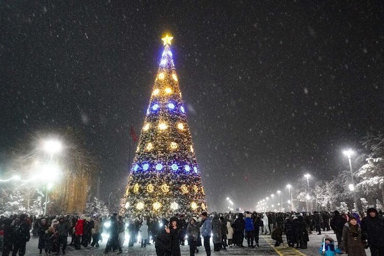 В 2026 году главная новогодняя елка столицы Кыргызстана решила «переехать» — ее установили на северной стороне площади Ала-Тоо. По словам мэра Айбека Джунушалиева, это сделали для расширения прогулочного пространства. Вокруг стало просторнее, гулять удобнее, а места для семейных фото, встреч и праздничных событий заметно прибавилось.