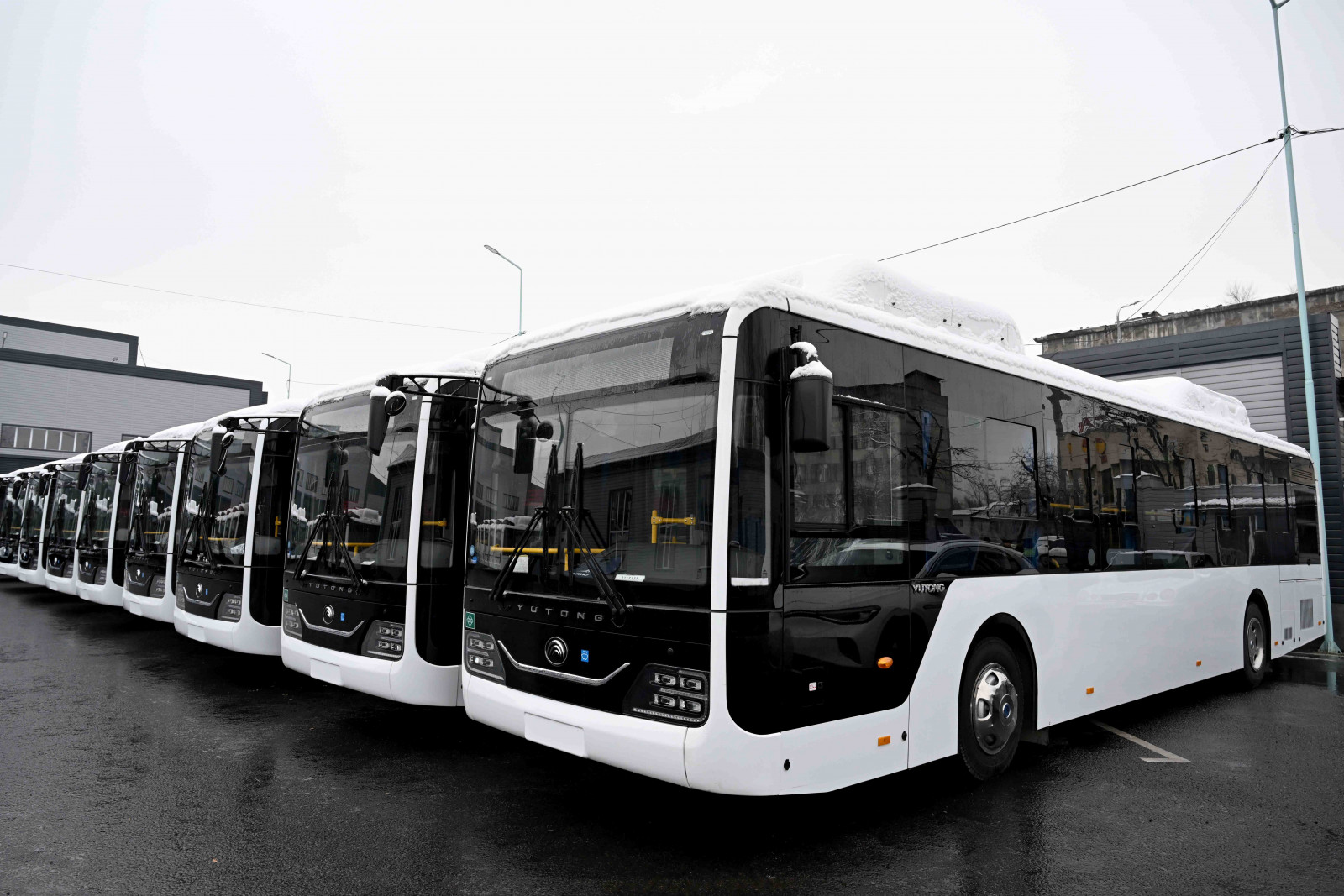 12-метровые автобусы марки Youtong закуплены в рамках программы Европейского банка реконструкции и развития. 42 единицы спецтехники — аварийные бригадные автомобили, самосвалы, гидрокраны, автомобили JAC T-6, траншейные виброкатки — закупили за счет республиканского бюджета.