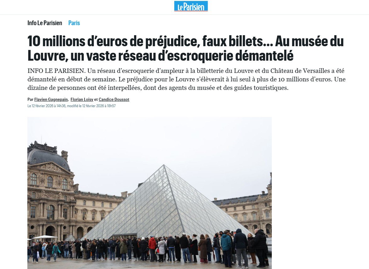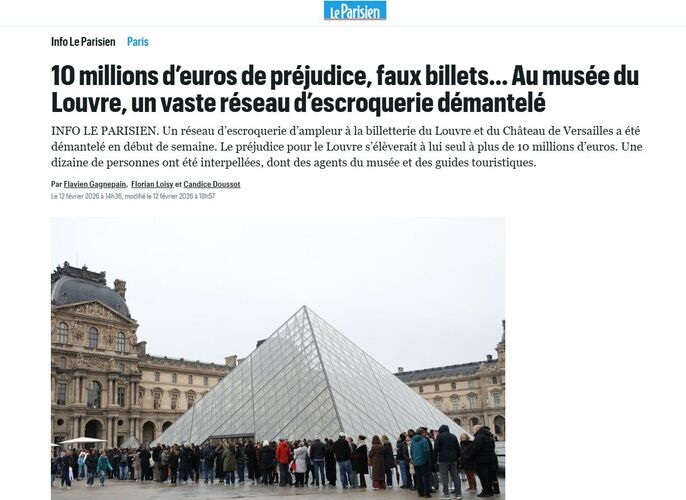 В Лувре и Версале годами продавали поддельные билеты, установила полиция Франции. Она разоблачила крупную мошенническую сеть, действовавшую в системе продажи билетов Лувра и Версальского дворца. Ущерб только для Лувра оценивается более чем в 10 миллионов евро, пишет Le Parisien.