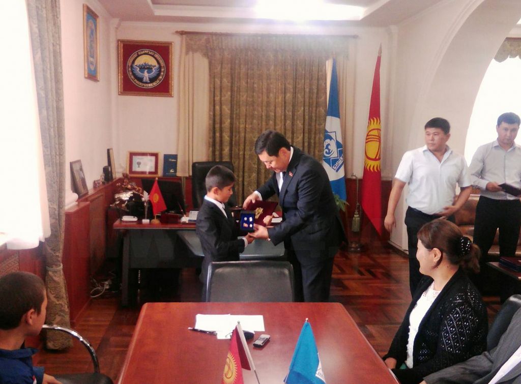 В Бишкекском городском кенеше сегодня наградили школьников, спасших тонувшего двухлетнего ребенка.