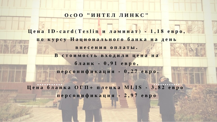До того момента как персонификация паспортов перешла в государственные руки, изготовлением главного документа гражданина занималось ОсОО «Интел Линкс». Но даже у нее бланки стоили дешевле, чем в настоящее время у ГРС.
