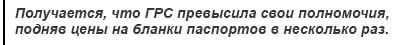 По его мнению, объяснение ГРС, что повышение стоимости паспорта заставит граждан бережней относиться к нему, более чем странно. «Я бы понял, если бы увеличили административный штраф за утерю или порчу, раз так печетесь о главном документе гражданина. Штрафы будут поступать напрямую в бюджет, а не на счета хозяйствующего субъекта, коим ГРС является», - подчеркнул он.