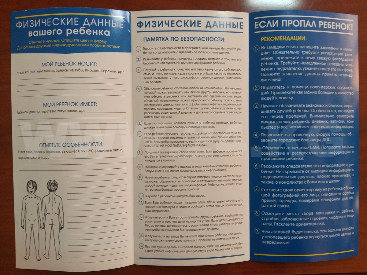 «Вы удивитесь, но зачастую родители не знают не то что окружения своего ребенка, не помнят, в какой тот был одежде - не могут даже назвать особые приметы - цвет глаз, наличие родинок. Нами был разработан детский паспорт, куда вклеивается фото ребенка, вносится вся необходимая информация, - сообщил Азамат Абдрахманов. - В нем прописаны рекомендации, что делать в случае пропажи подростка, и информация по безопасности».